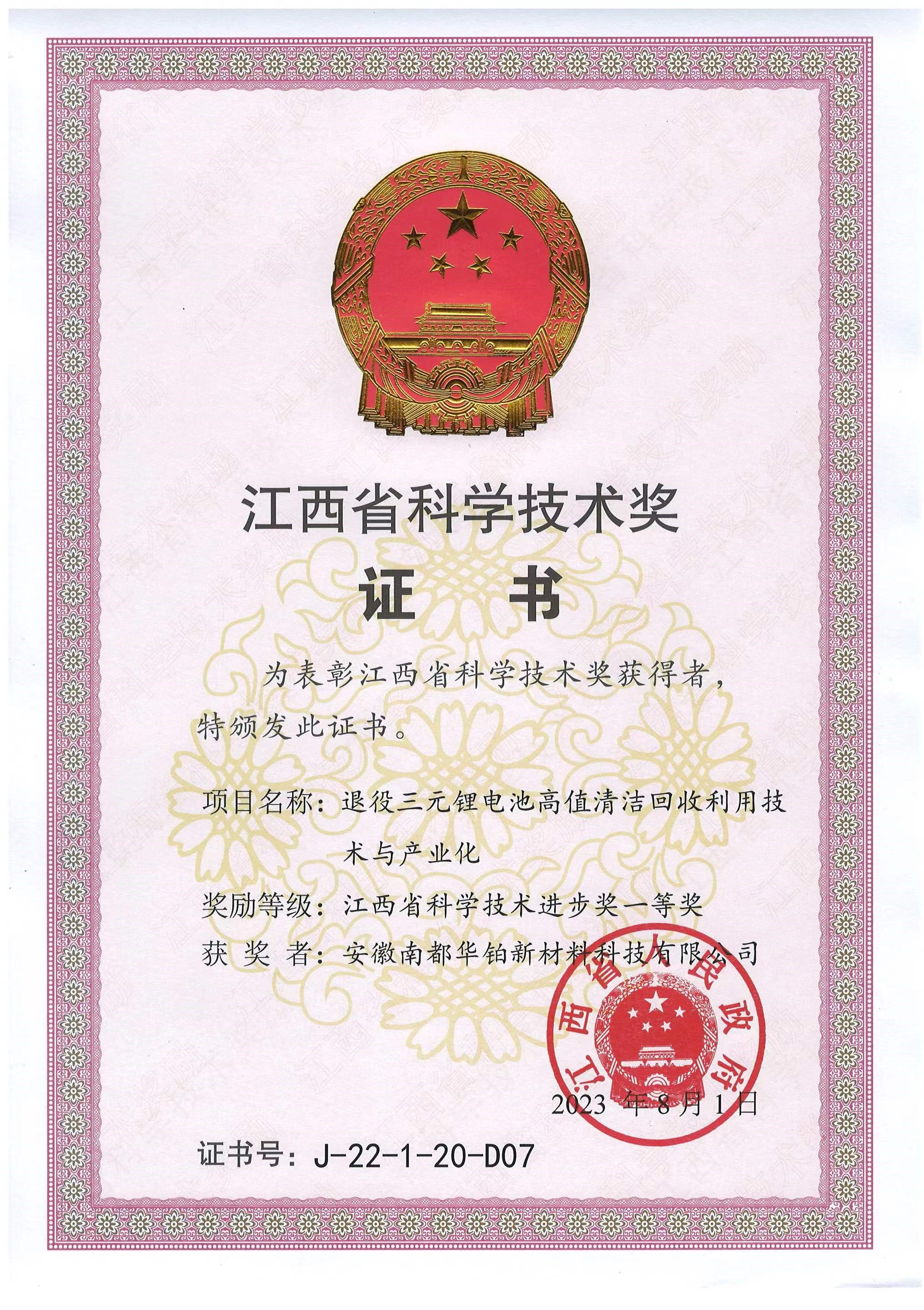 ÈÕǰ £¬½­Î÷Ê¡¿ÆÑ§ÊÖÒÕÌüÐû²¼ÁË2022Äê¶È½­Î÷Ê¡¿ÆÑ§ÊÖÒÕ½±»ñ½±Ãûµ¥ ¡£Óɰ²»Õ×ðÁú¿­Ê±»ª²¬ÐÂÖÊÁϿƼ¼ÓÐÏÞ¹«Ë¾ÍŽáÉ걨µÄ¡¶ÍËÒÛÈýÔªï®µç³Ø¸ßÖµÇå½à½ÓÄÉʹÓÃÊÖÒÕÓ빤ҵ»¯¡·ÏîÄ¿ÈÙ»ñÊ¡¿ÆÑ§ÊÖÒÕǰ½ø½±Ò»µÈ½± ¡£